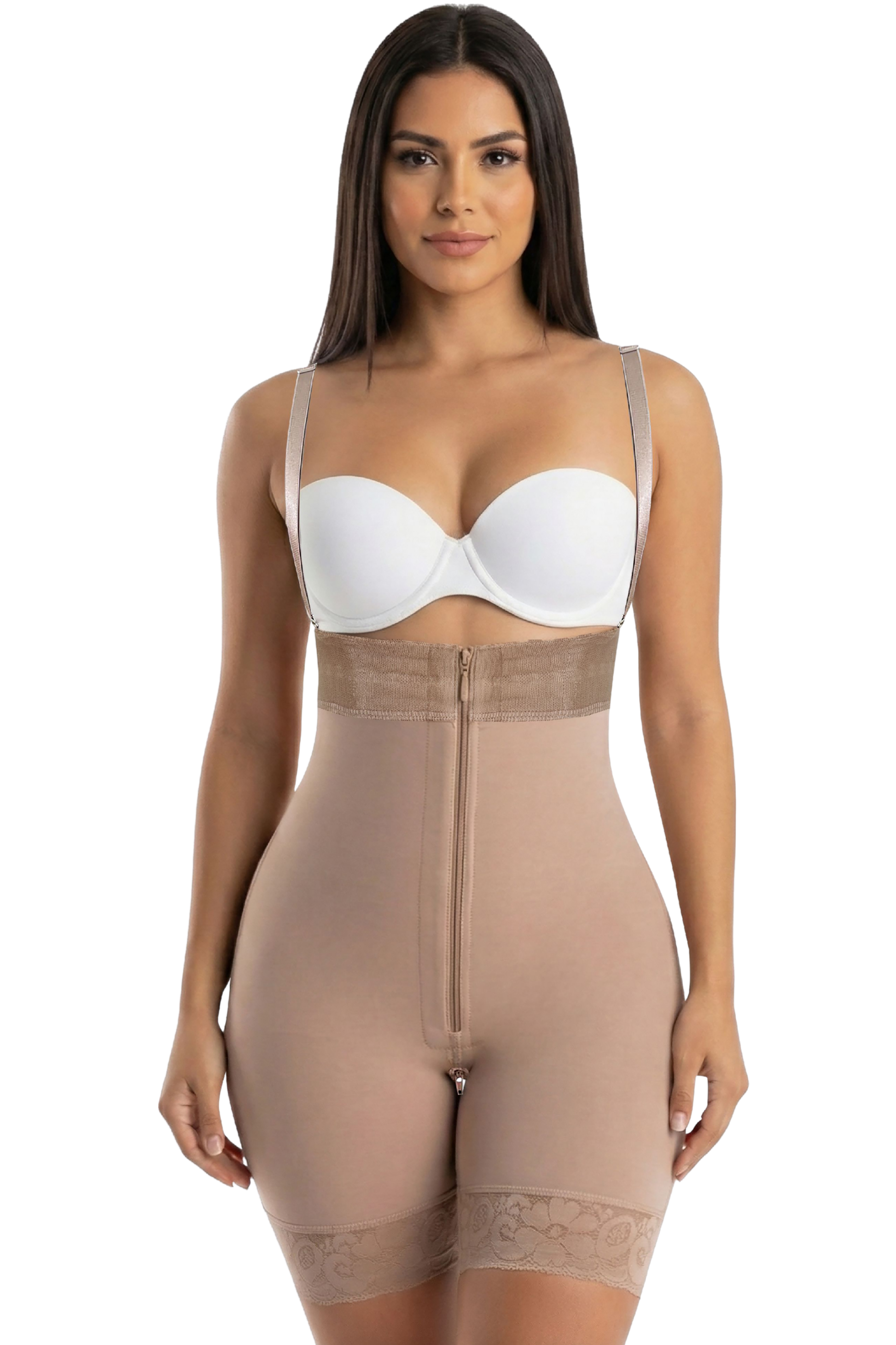 Flat Tummy Control: High compression in the abdominal area with a reinforced front zipper that provides security and support all day, plus a line of internal hooks.