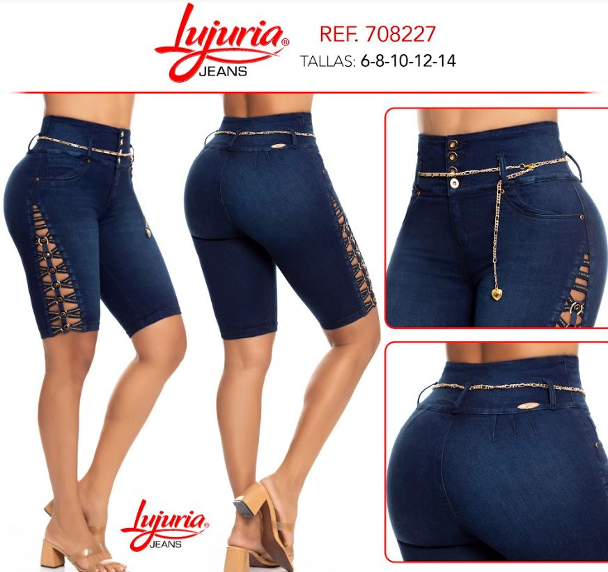 Esta bermuda es levantacola. Tus glúteos lucirán instantáneamente más realzados. Este estilo te hará sentir cómoda y segura. Hecho en Colombia con índigo, algodón, poliéster y elastano.