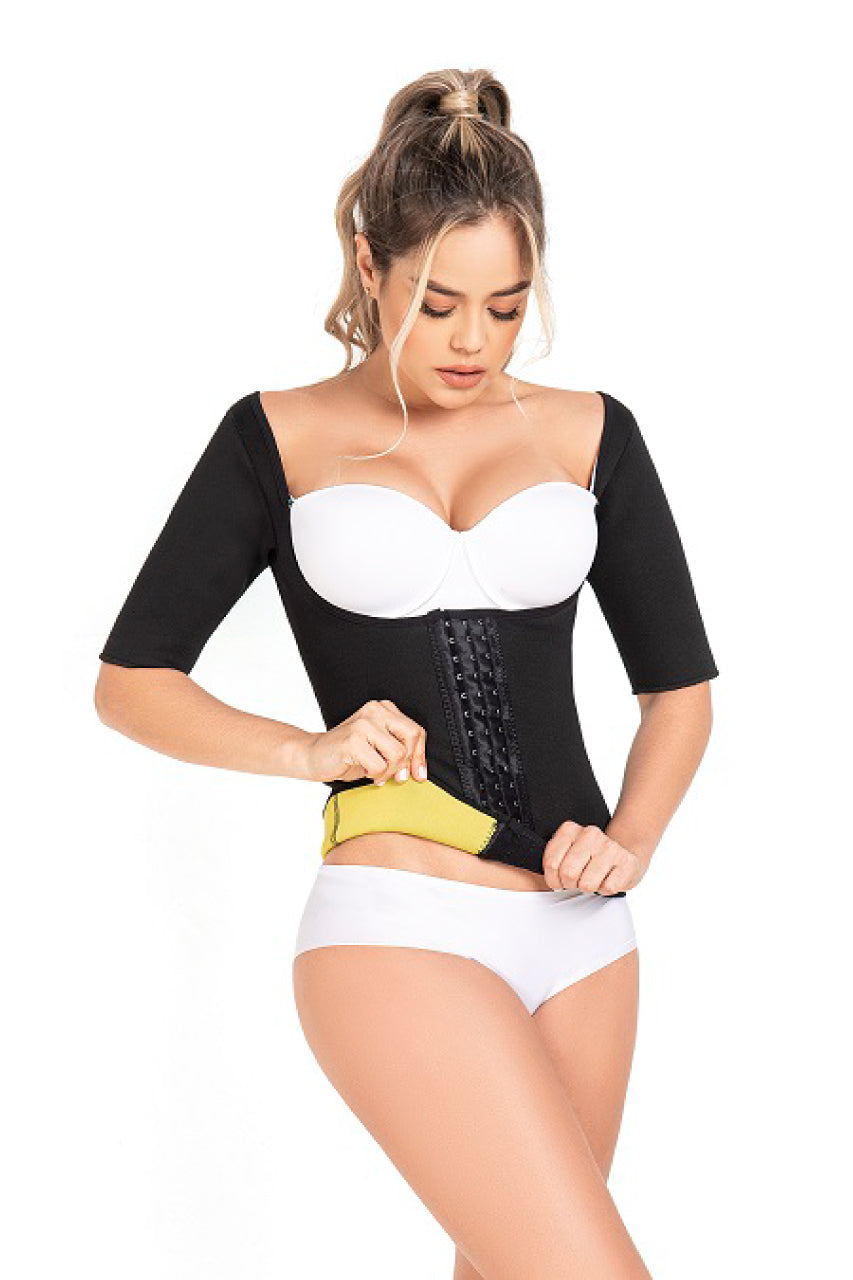Faja con efecto sauna en zona de brazos, espalda, cintura, abdomen alto y bajo. Aumenta la sudoración para eliminar toxinas. Para mejores resultados, utilice una crema reductora y el rollo osmótico.