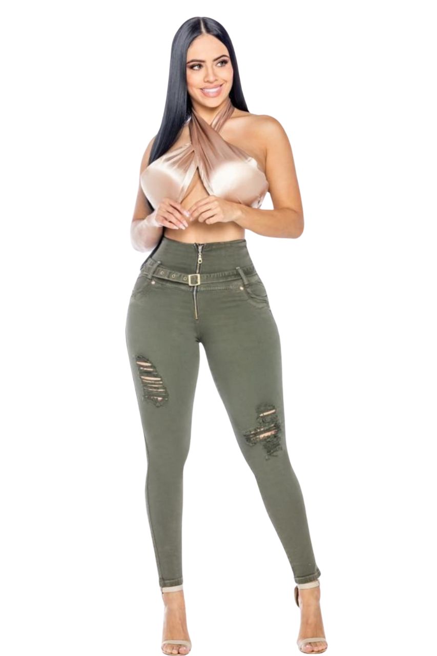 This Jean is a butt lifter, your buttocks will look instantly more enhanced. High rise to make you feel comfortable and secure. Its silhouette is fitted and made of indigo flat fabric, cotton, polyester, and elastane. NO RETURN OR EXCHANGES ON SALE ITEMS