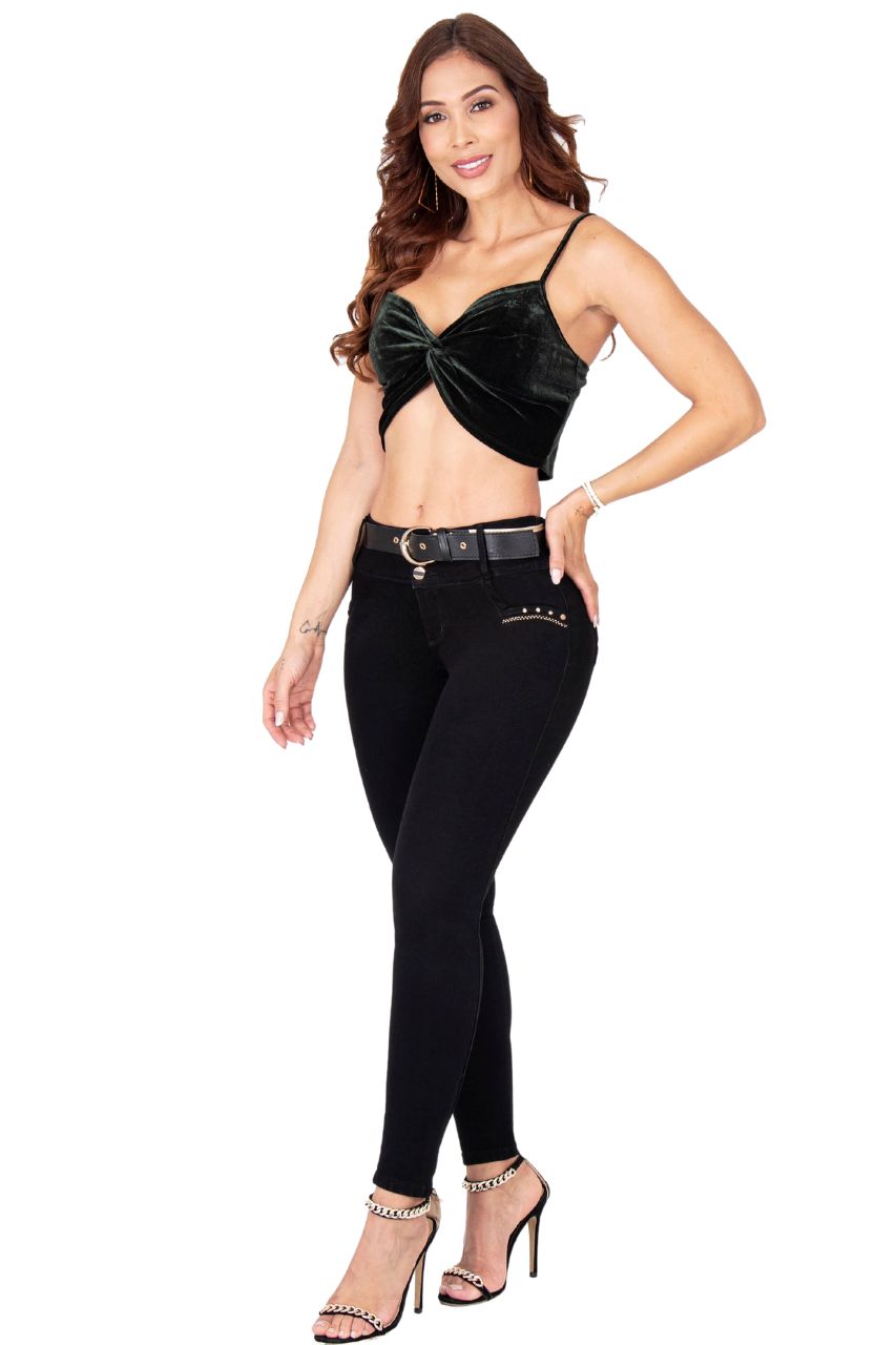Este Jean es levantacola, tus glúteos lucirán más realzados al instante. Tiro alto para hacerte sentir cómoda y segura. Su silueta es ajustada y está elaborado en tejido plano índigo, en algodón, poliéster y elastano. PRODUCTOS EN PROMOCION NO TIENEN DEVOLUCION NI CAMBIO.